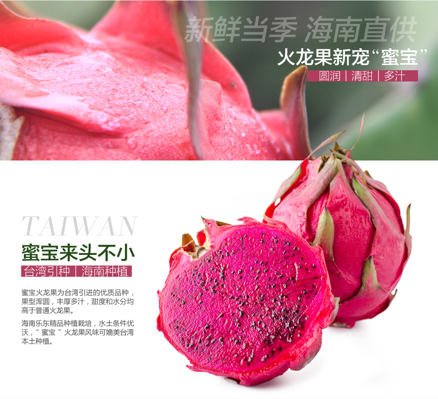 海南蜜宝红心火龙果2.5kg蜜宝红心火龙果是非常受欢迎的健康水果之一