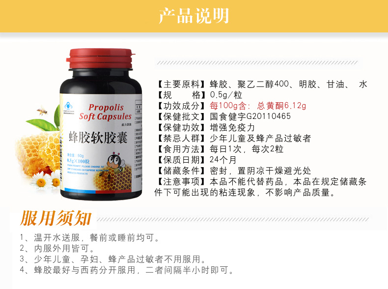 盛力源牌蜂胶软胶囊 0.5g/粒*100粒*4瓶套餐