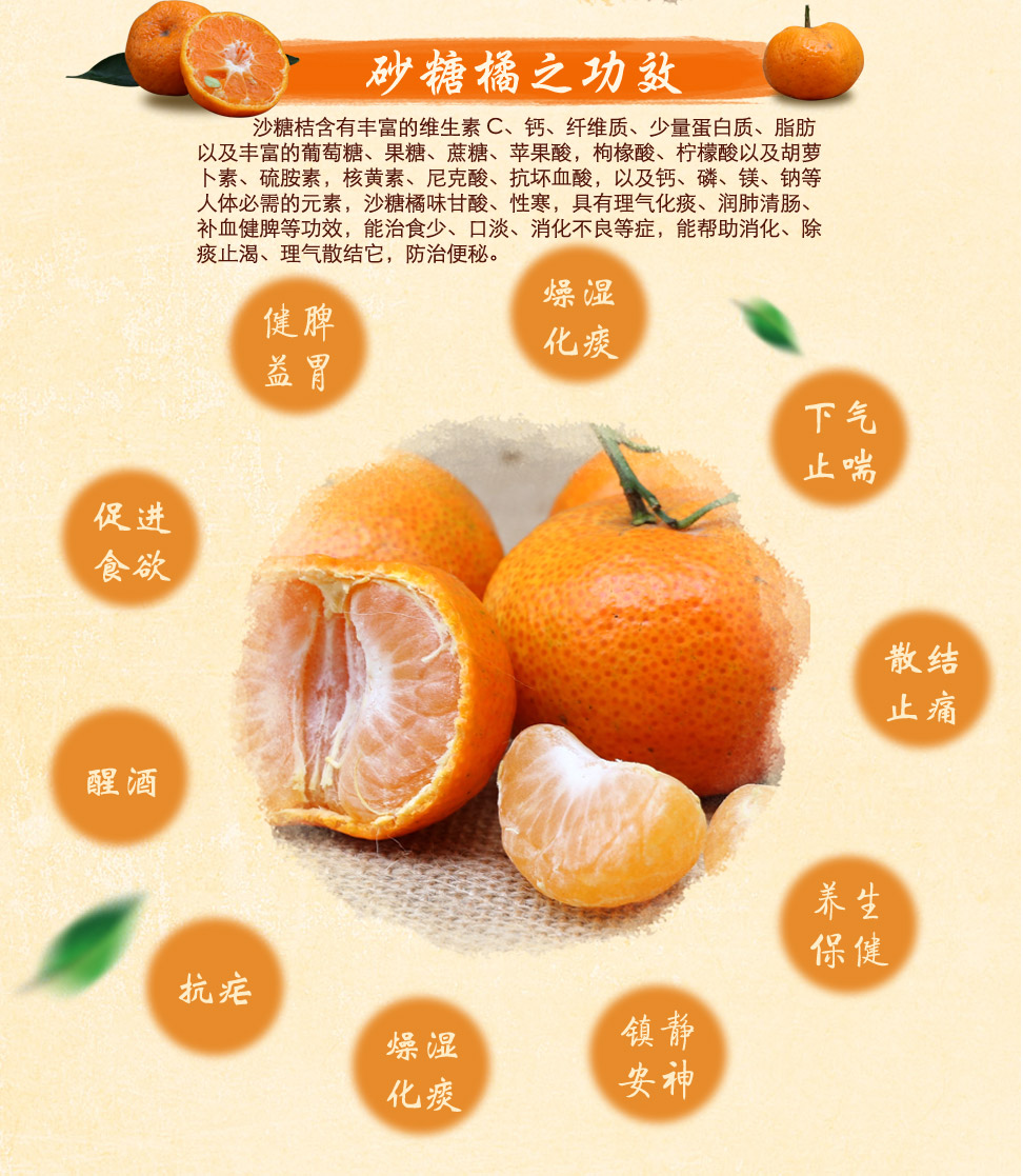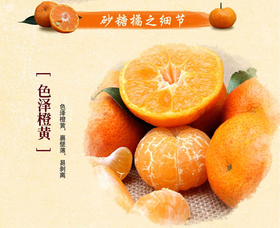 果实扁圆形,顶部有瘤状突起,蒂脐端凹陷,色泽橙黄,裹壁薄,易剥离;果肉爽脆、汁多、化渣、味清甜,吃后沁心润喉,耐人寻味。